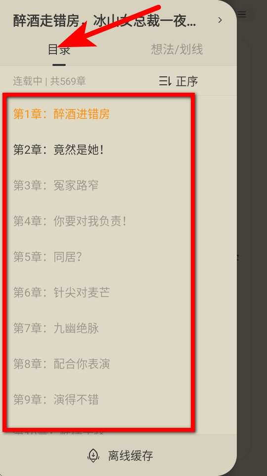 4、在目录列表中,即可查看小说的章节目录,完成目录查看操作。