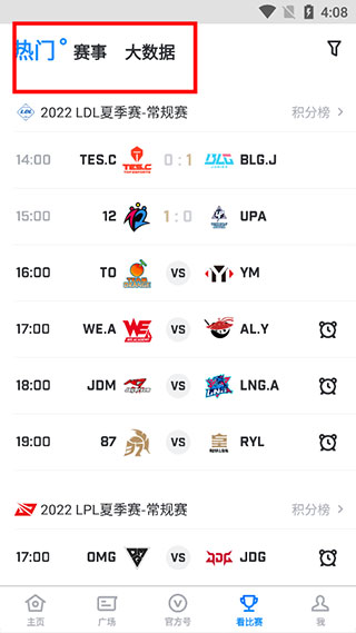 3、让用户了解电竞比赛信息,Score电竞数据进行了不同的大数据重新设计,用户可以在这里查询各个战队。