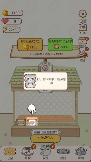 我给仓鼠盖别墅2手游是一款模拟经营类型的游戏,在游戏中玩家可以收养各种的小仓鼠来一起生活吧,每一只小仓鼠都有着独特的性格特点,可以自由的分配物资带领着它们一起来探险吧。