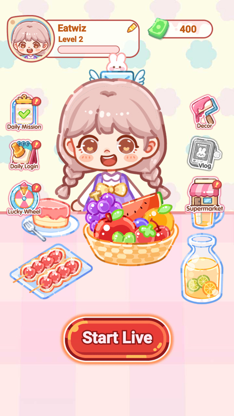 3、给Coco 穿上超萌服饰,从小兔子玩偶套装到闪闪人鱼公主服,应有尽有!还能用各种装饰打扮你的直播间哦。