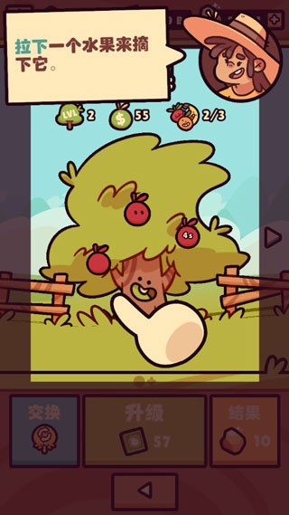 6、摘取水果的方法也十分简单,点击果树向下拉动,便可成功摘取。