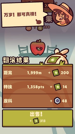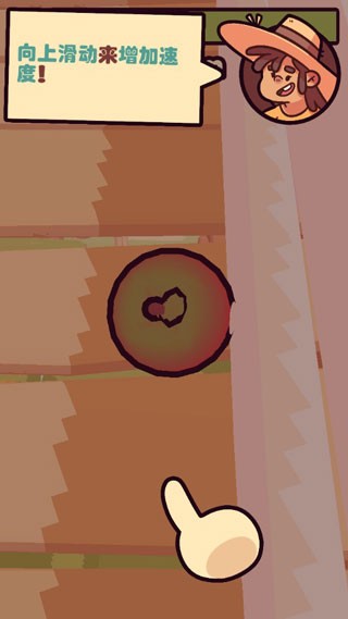 2、刚得到还不能产生一定的收益,为此你需要翻滚苹果才能完成资金的积累,其中关于苹果的翻滚有着一个小游戏(看下图),向上滑动可以获取加速功能,轻点并按住来完成蓄力,松开即可跳跃。