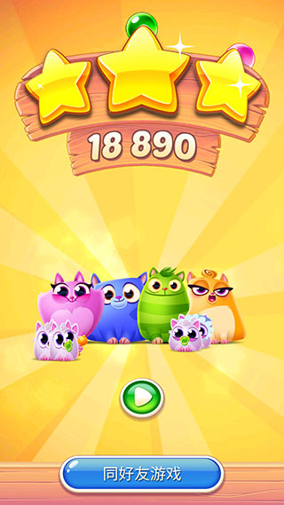 CookieCatsPop是一款超萌超可爱的益智闯关游戏。它的玩法延续了经典泡泡龙的玩法,在游戏里,你得消除颜色一样的泡泡,成功救出小猫咪,这样就能挑战成功啦,游戏里的关卡设计也是一大亮点,有上百道关卡等着你去挑战,难度是逐渐增加的。