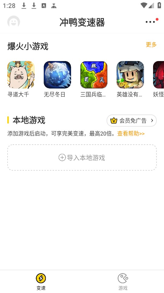 冲鸭变速器这款游戏加速器简直是手游玩家的福音!它能一键跳过那些冗长的剧情动画,让你直接进入核心操作环节,再也不用被迫看无关紧要的对话。更厉害的是内置的调速功能,战斗节奏想快就快,解谜关卡想慢就慢!需要的玩家用户们快来试试看吧!