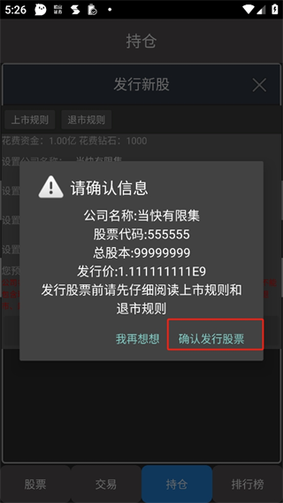 4、点击确认发行股票。