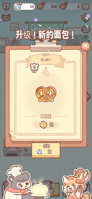 2、将好吃的面包上架销售,吸引不同的客人,完成更多订单,玩法丰富,每天都是不同任务。
