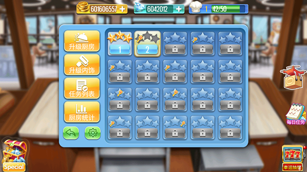 2、玩法新颖,多种多样的厨房烹饪关卡,还有餐厅装饰和各种有趣的顾客。