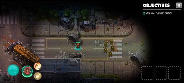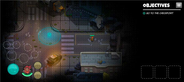 1、很简单的操作方式,只需要控制自己的角色去进行移动射击就可以,消灭各种不同的僵尸来获得大量的资源,保证生存;