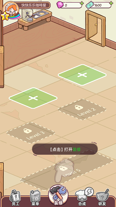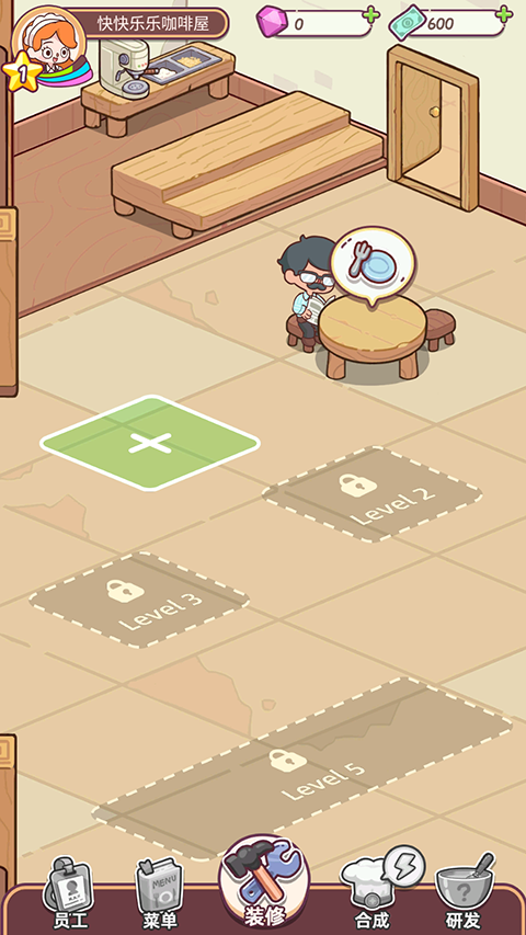 4、任意装修玩法,咖啡店需要有新主题才能升级关卡,扩大面积;