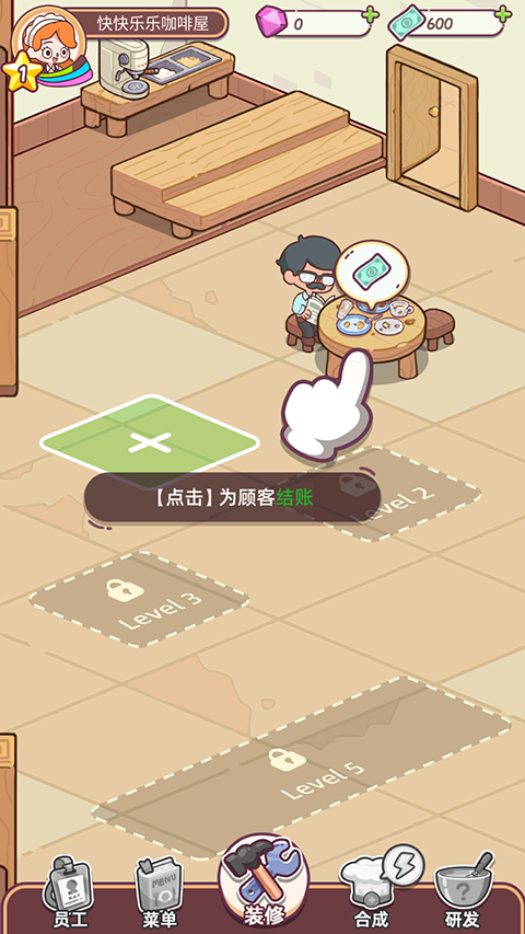 2、任意装修玩法,咖啡店需要有新主题才能升级关卡,扩大面积;