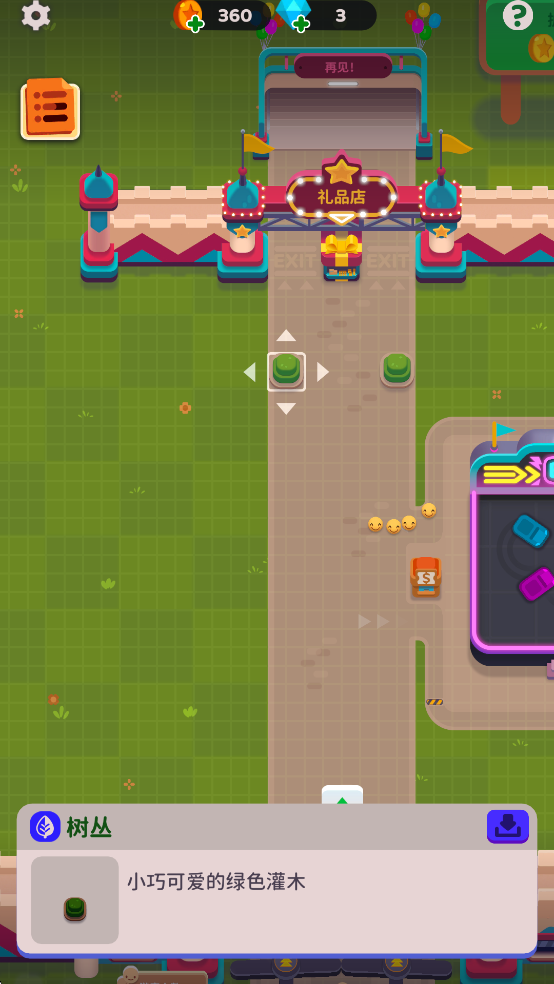 点击可以移动装饰、风扇和障碍。利用它们可将游客引向游乐项目。