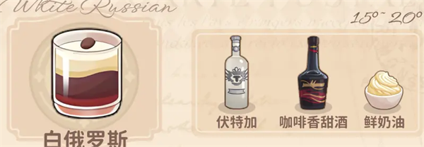 配方:伏特加+鲜奶油+咖啡香甜酒