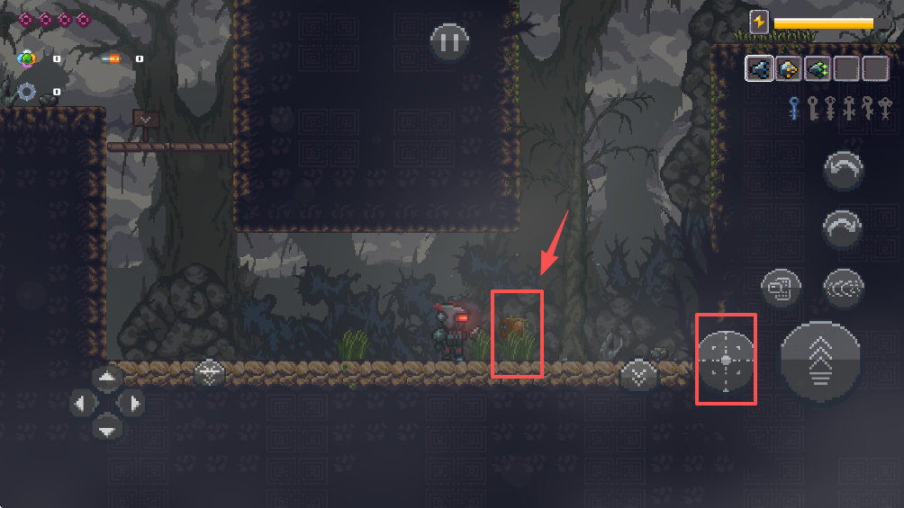 2、进入关卡后,通过左侧的虚拟方向键控制角色移动,右侧则包含攻击、跳跃等操作按钮。