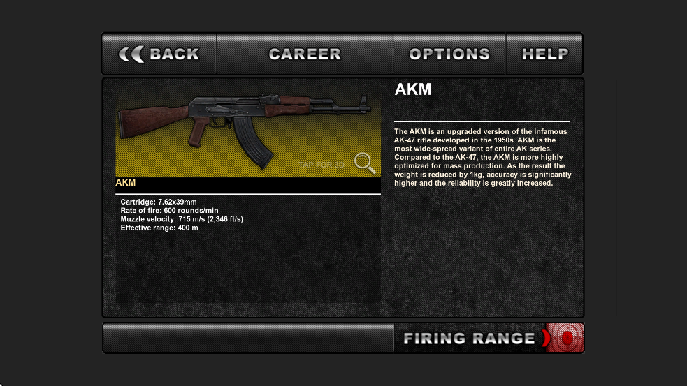 AKM是1950年代研发的著名AK-47步枪的升级版本。作为AK系列中最普及的型号,相较于AK-47,AKM在批量生产方面进行了更深入的优化。由此实现整枪重量减轻1公斤,精度显著提升,可靠性大幅增强。