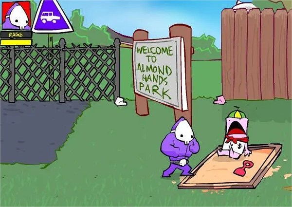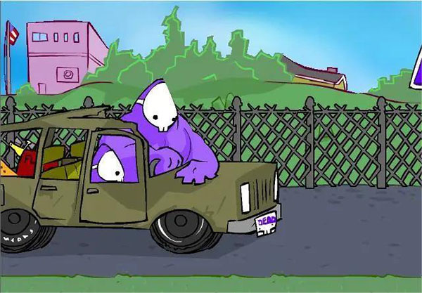 又有好多小朋友来了!其中有一个黑色西装系蝴蝶领带的小子(血量高于正常小朋友)会拿一把玩具枪射你(子弹是马桶把子?),被打中会伤血! 提示:停在右上方的除草机也可以当炸药使哦!