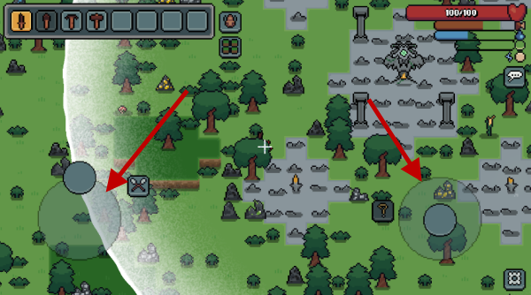 1、首先进入到游戏中后,左侧的摇杆可以用来控制方向,右侧为视角方向。
