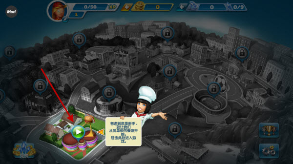 1、进入游戏后,需要从最简单的餐厅开始做起,点击屏幕上的开始按钮。