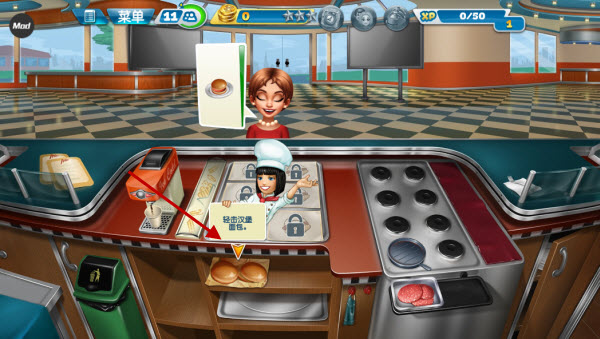 5、这个顾客需要汉堡,所以我们制作汉堡,首先点击汉堡胚。