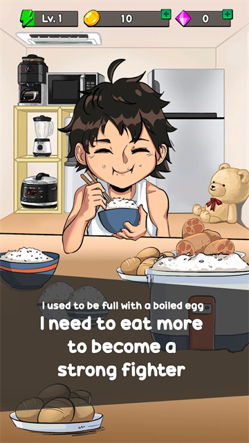 4、不断的去吃各种食物来增强您的能力,变成世界上知名的食物斗士