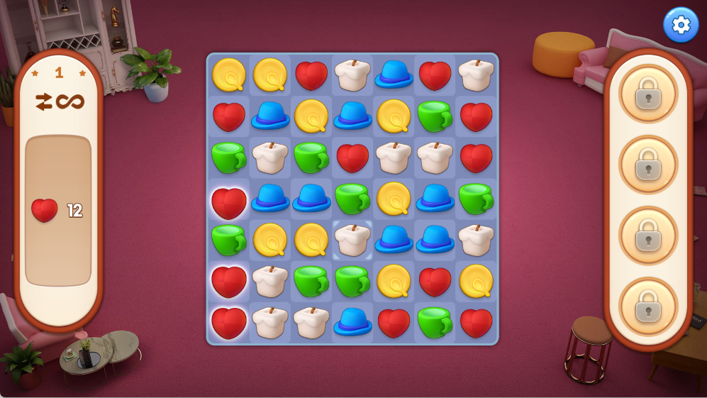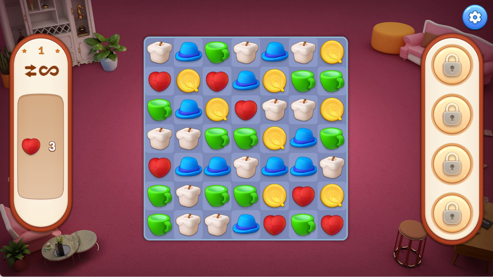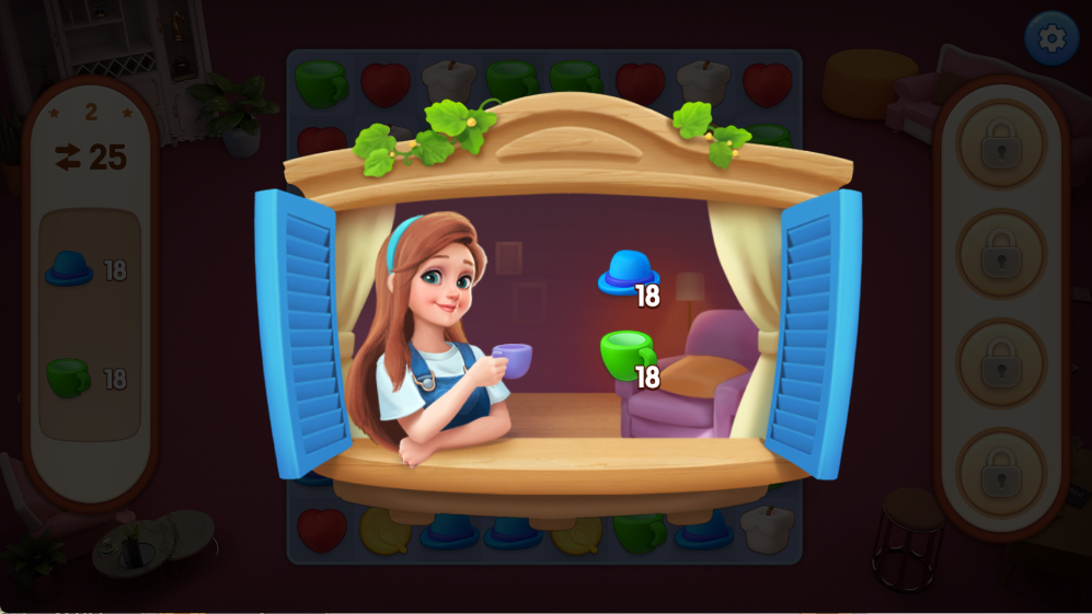 玩家从一间普通的小公寓起步,通过完成消除关卡来获取金币与材料