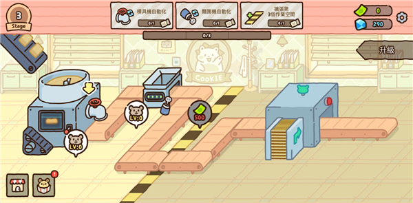 一款卡通风格工厂模拟经营手游,玩家进入游戏后将会成为一位饼干工厂老板