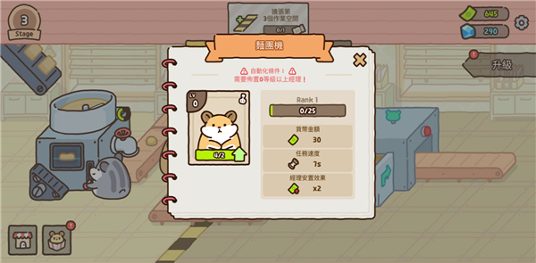 4、招募更多仓鼠加入工作,让它们在这为你工作,而且仓鼠造型也是非常的可爱;