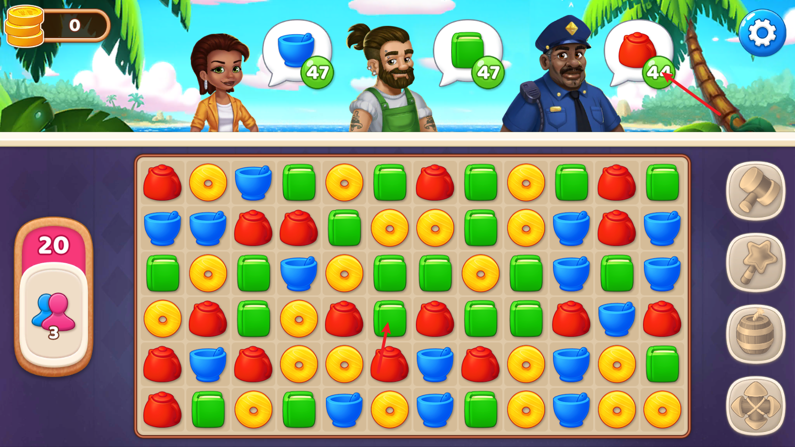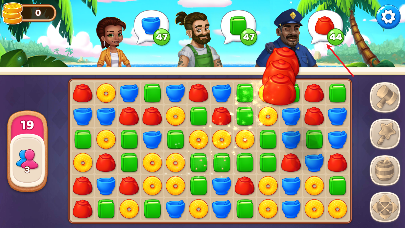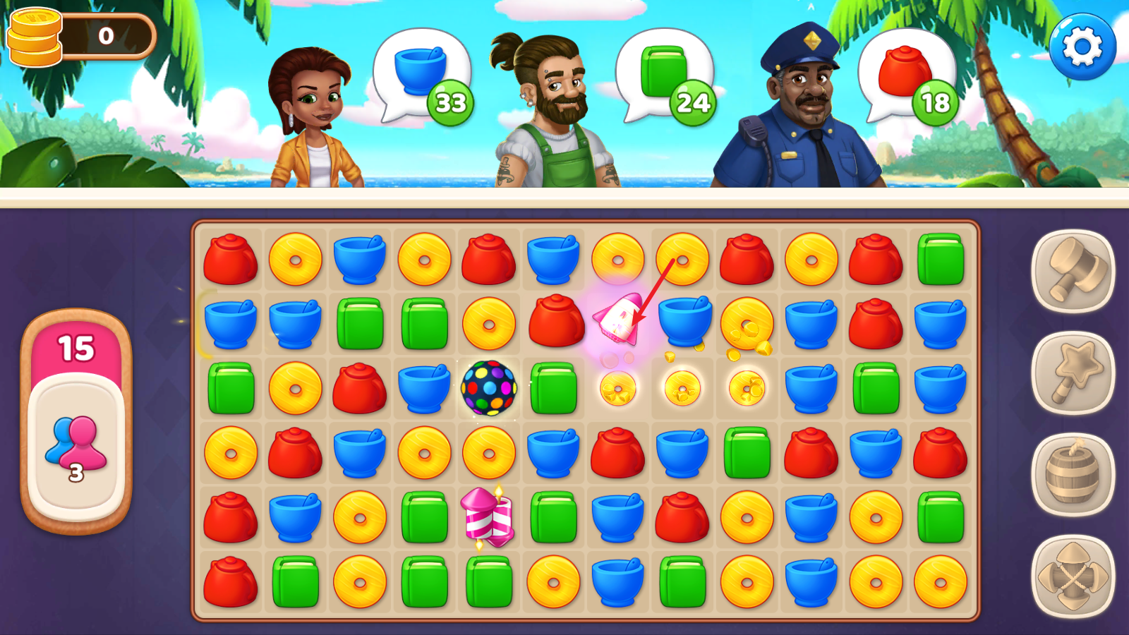 2、挪动物品,让相同的三个或以上物品凑齐同行或者同列即可消除。