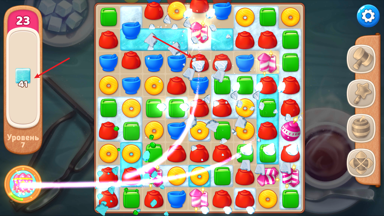 6、通过消除或者道具的方式来击碎冰块,这样就能完成挑战。
