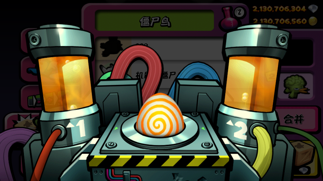4、这时候点击右边的【合并】,再点击第一只僵尸鸟。