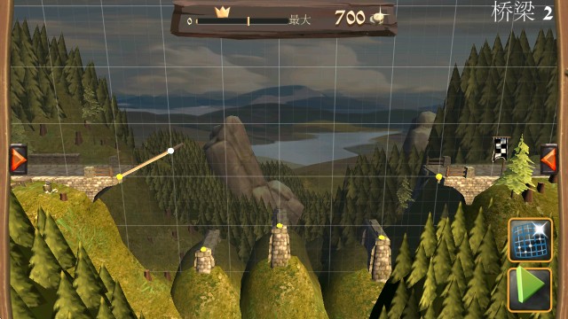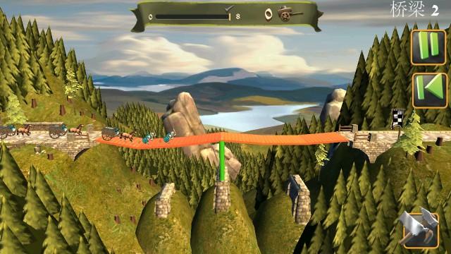 本作的重点在于动脑而不在于动手,所以操作方面是相当简单的,玩家只需通过点击选择建筑材料,然后滑动屏幕摆放它们便可轻松完成游戏操作,流畅的操控手感,主要考验的是大家的无限智慧,如何搭建好一座牢固、结实的桥梁,防止马车和人通过时不会坍塌呢?