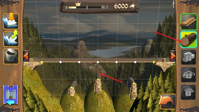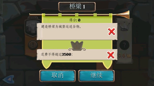 2、桥梁构造者中世纪游戏将以任务型模式展开,玩家将根据要求建造不同的桥梁。根据断料的地理构造,玩家将使用系统提供的木材、石头、绳索、棚架这些原始的素材搭建桥梁;