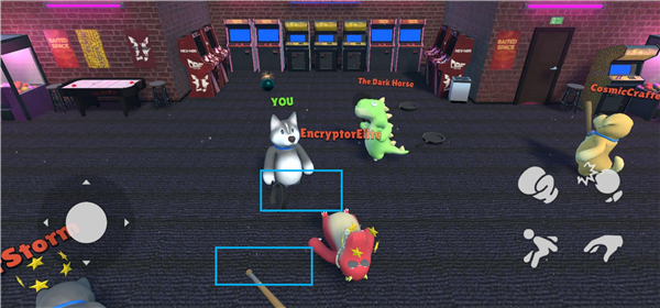 2、玩家通过左边摇杆控制动物行动方向,右边按键进行攻击、互动。