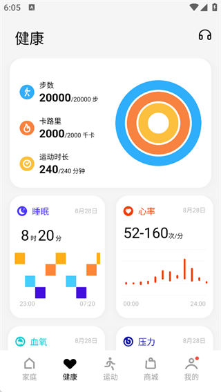 3、运动健康:在日常活动中佩戴穿戴设备并同步数据至 App,便可轻松查看每日健康数据。