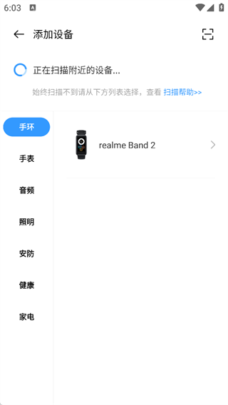 只需打开realme link,平台会自动搜索附近的设备,支持手动添加绑定