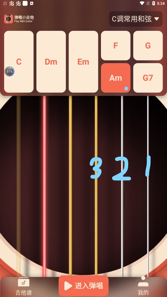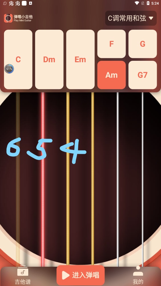 而且会让手指很疼,但使用弹唱小吉他app切换和弦的方式很简单,只需要点击上方的和弦按钮