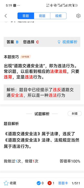 在答题过程中,若答错题目,平台会提供题目解析、视频解析以帮助您更好理解错题,同时,您可以将错题加入收藏夹,实时查看自己的答题正确率和进步情况。