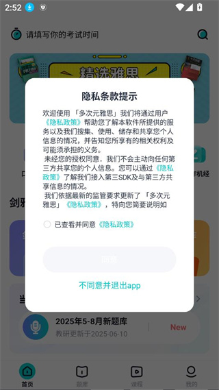 1、下载并安装多次元雅思app,查看并同意隐私政策,开启备考之旅。
