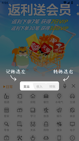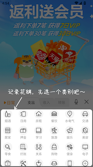 ·限制剁手:设定当月预算,月光不再害怕,小松鼠随时提醒记账后剩余费用,记账后摆脱月光族。