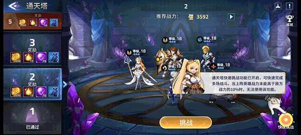 当我们实力远高于当前层数的实力,我们就可以使用快速挑战来跳过战力差距过大的关卡,但如果我们上阵的阵容战力不能高于敌方战力百分之10,将无法使用快速挑战功能。
