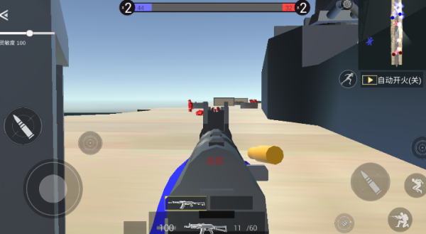 4、前面和我们不一样颜色的就是敌人,瞄准射击,消灭他们。