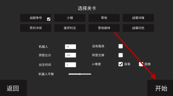 2、我们选择单人模式,接着来选择地图和挑战设置,点击开始进行游玩。