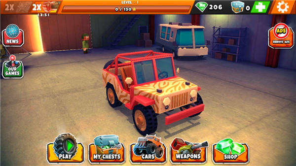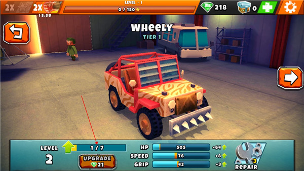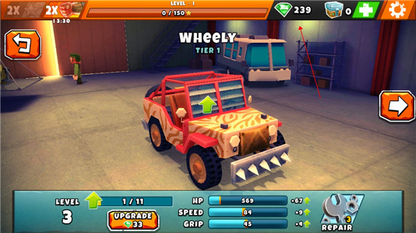 游戏中我们可以驾驶车辆去撞击僵尸,也可以收集路上随机出现的武器,有了武器之后,在驾驶过程中,车载武器就会自动攻击僵尸,这也是很好的消灭僵尸的手段。本作虽然为玩家们提供了车辆这一保护工具,但是车辆在撞击僵尸或者被僵尸攻击的时候,还是会不断掉血,直到车辆报废,所以千万不要以为有了车辆就安全了,这也让玩家们在挑战战能更加谨慎对待。