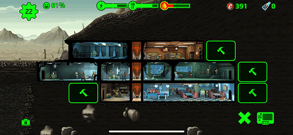 派遣您的居民到地面上,去探索被炸毁后的地面废墟,让他们在“废土”中冒险,寻找可用的幸存物,或是直面无言的死亡;找到新的装甲和武器,增长经验,然后赚取“瓶盖”。但记住,不要让他们死掉!
