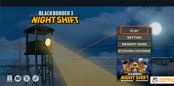 1、在开心电玩下载并安装好黑色边境3后打开游戏,点击“PLAY”开始游玩。