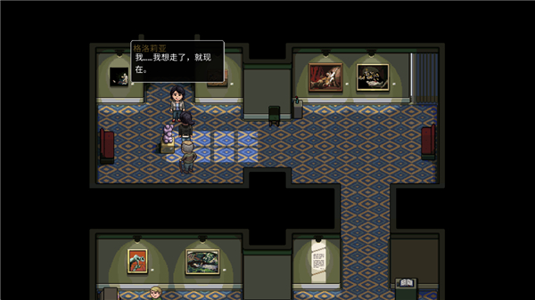 3、移动角色跟随者剧情来到展览馆,一直来到这里面左边的通道看见意外场景,你现在想立刻离开这里。