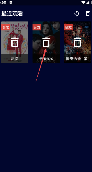 2、进入到历史记录板块之后,我们可以点击右上角的删除,全部删除观看记录;