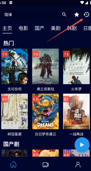 1、打开右上角的那个圆圈按钮,就可以进入到观看历史记录板块;