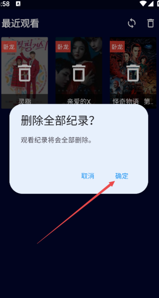 4、点击删除观看记录之后,会弹出确认按钮,点击确认就能直接删除了!