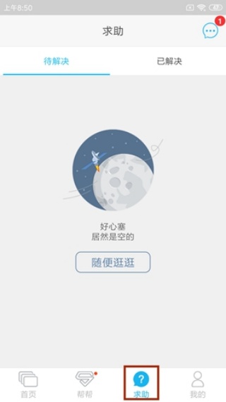 3、之后是【求助】功能分区,我们在这里可以看到我们提出的问题的回答情况。