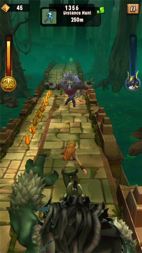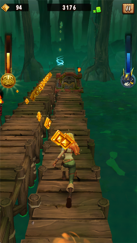 神庙逃亡3手游是一款动作跑酷类型的游戏,在游戏中玩家通过滑动屏幕来操控角色,及时的反应躲避各种陷阱和障碍来不断逃跑吧,躲避身后的怪物来获得更高的分数,还可以使用道具来降低游戏难度。